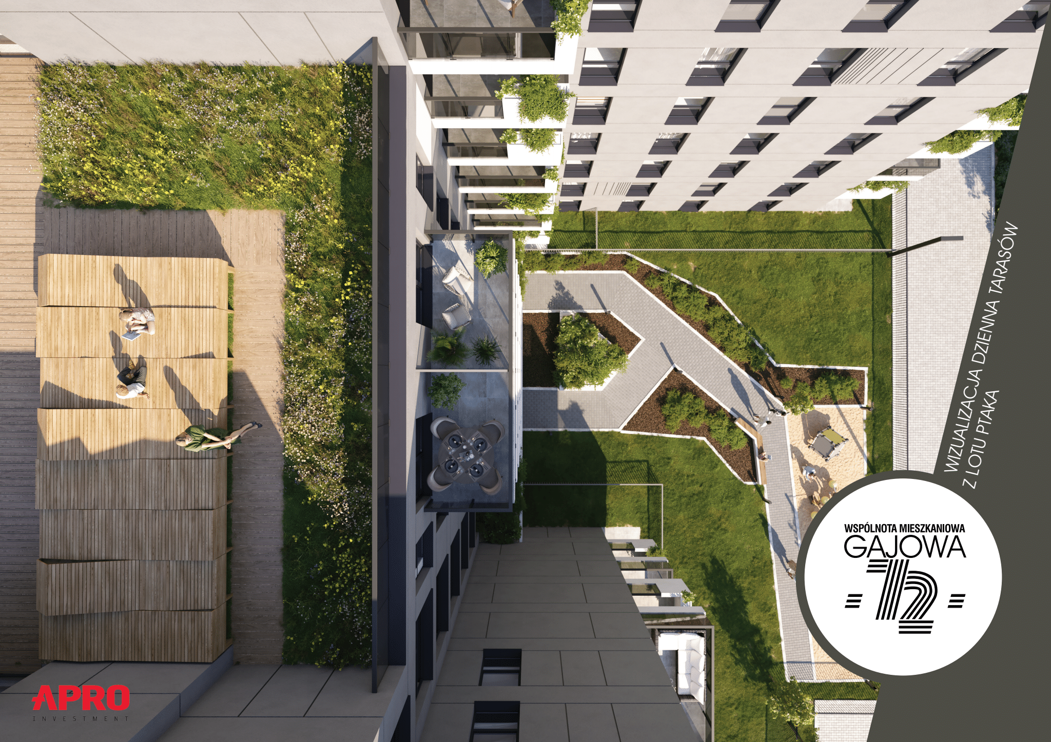 Na dachu środkowej przewidziano zielony taras dostępny dla wszystkich mieszkańców. Zależy nam na kształtowaniu ekologicznej świadomości, dlatego w tej przestrzeni królować będzie łąka kwietna.